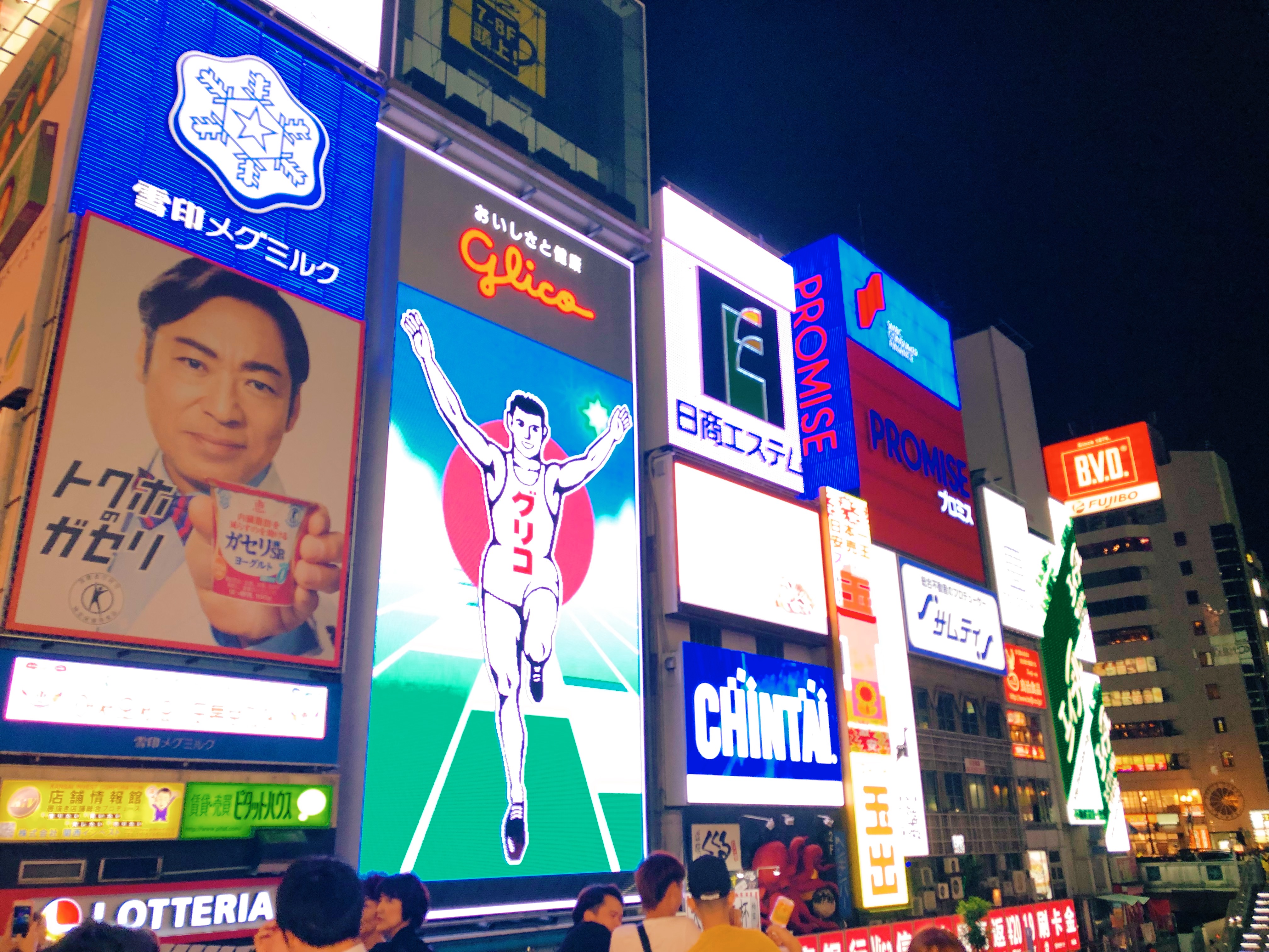 I stay on this promenade for quite some time, just meandering in and out of the different shops and taking in the view. There’s a rugby match this weekend, so every few minutes I can hear the BOOM of excitement and applause from a nearby sports pub. There are so many tourists here for the games, especially from England & Ireland, so I manage to blend in fairly easily. Not far from the main canal is the iconic Glico Running Man sign, one of the most recognizable sights of Osaka, advertising a well-known Japanese confectionery company headquartered in this city. They make many products, one of the most famous being Pocky – chocolate-coated biscuit sticks.